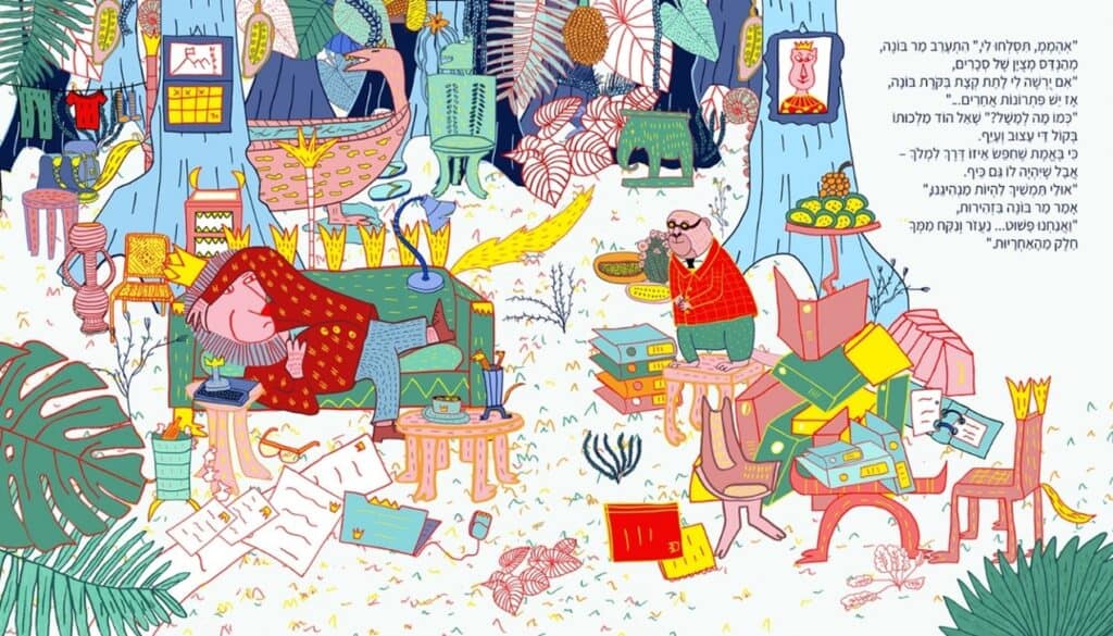 איור: אורלי דבור, קורס טקסט-תמונה 2025, עבור “המלך אהרל’ה פורש” מאת יונתן יבין