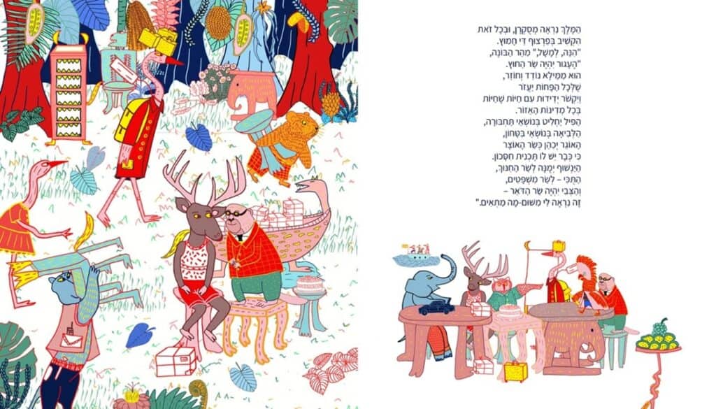 איור: אורלי דבור, קורס טקסט-תמונה 2025, סקאלה צבעונית, עבור “המלך אהרל’ה פורש” מאת יונתן יבין